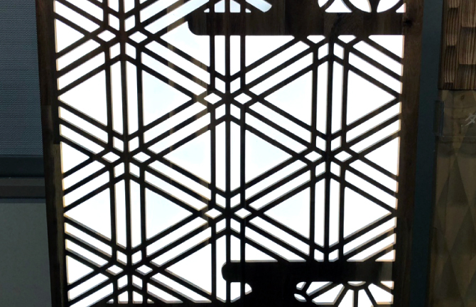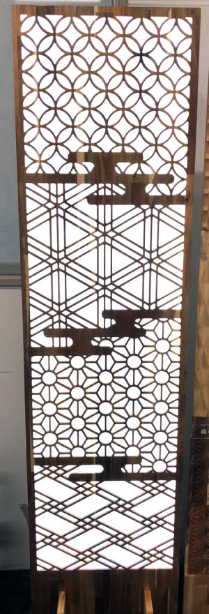もともとは障子や欄間などの建具に用いられてきましたが、現代ではインテリアパネル、照明、アート作品などにも応用され、和の美しさと職人技が空間演出に活かされています。