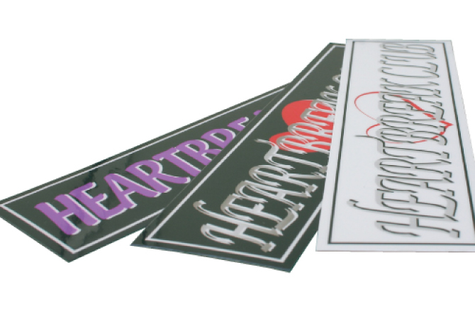 透明樹脂のコーティングで美しい光沢と立体感を出すステッカー加工です。
