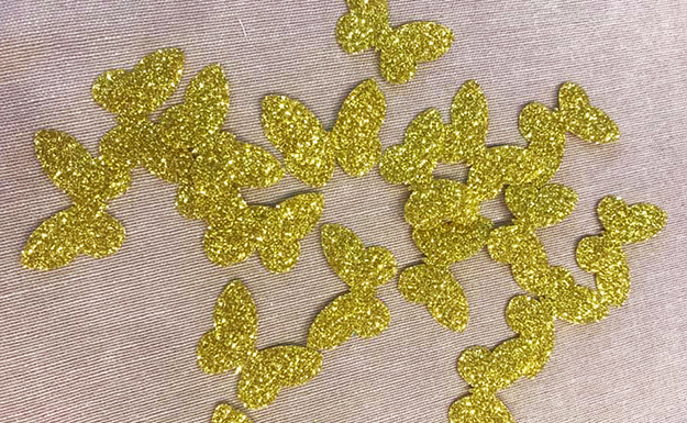 厚手の派手なラメシート。表面のザラザラした部分が光の反射をより一層強くします。